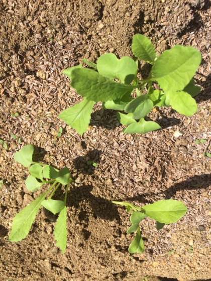 観察をしに行ってきました。子葉と本葉が出ていました。今月中に間引きをする予定です。