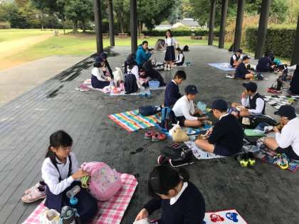 10月23日(火)、今日は秋の遠足で5年生が飛鳥方面に来ています。