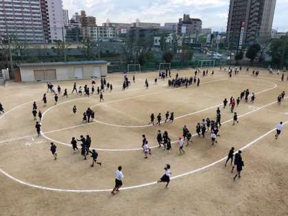 今週(1月21日〜25日)は、2時間目の後の15分休みにかけあし週間を行っています。全校一斉に運動場のトラックを低学年(内側)と高学年(外側)に分かれて走ります。みんな元気に自分のペースで走り続け、体力作りに励んでいます。