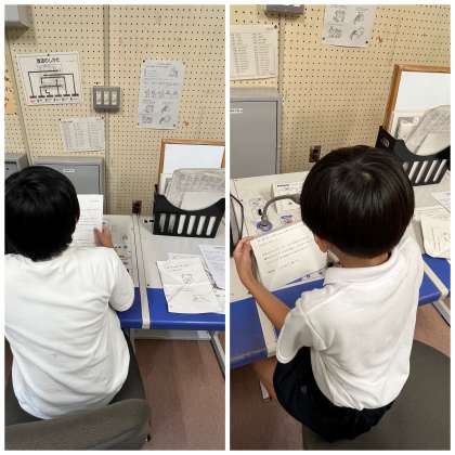 写真は、給食委員会の子どもたちが8・9月の給食目標について放送しているところです。