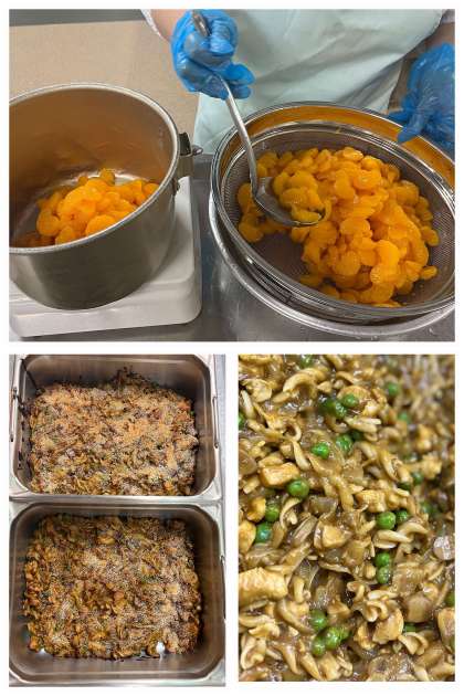 鶏肉と米粉のマカロニ、玉ねぎなどの野菜を炒め、カレールウで味付けをしたグラタンです。