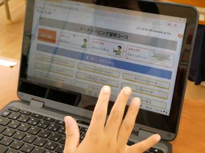 1年生がキーボードを使って文字を打つ練習に挑戦しています。