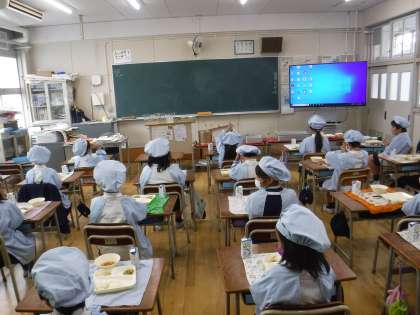 写真は、2年生の給食時間のようすです。
