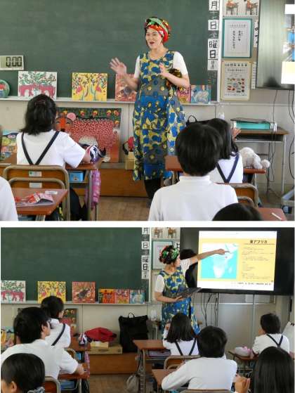 先生は、ご自身が東アフリカを訪れた際に撮影されたサファリで暮らす動物たちの写真を見せながら、現地の自然や生活についてクイズを交えてわかりやすく説明してくださいました。