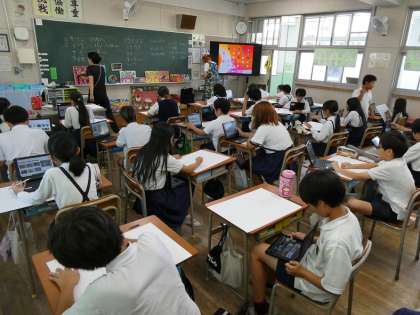 5年生は、万博交流プログラムの一環として、作品展に向けてティンガティンガの制作に取り組んでいます。