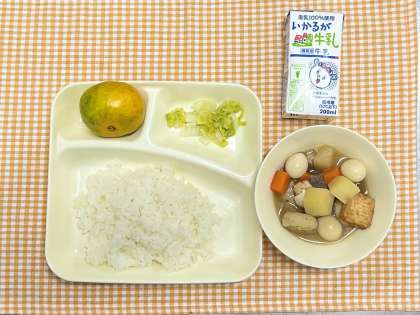 鶏肉、うずらたまご、ごぼう平天、じゃがいも、こんにゃく、あつあげ、だいこん、にんじんを使用しています。寒さが深まってきた時期に体の温まる献立がより一層、美味しく感じました。