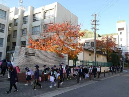 校庭の桜の木も随分赤く色づき、葉っぱも少し落ちてきました。