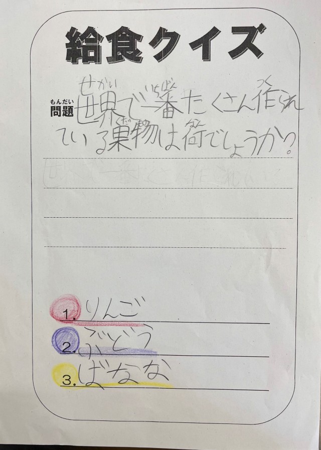 クイズは給食委員会の子どもが考えました。