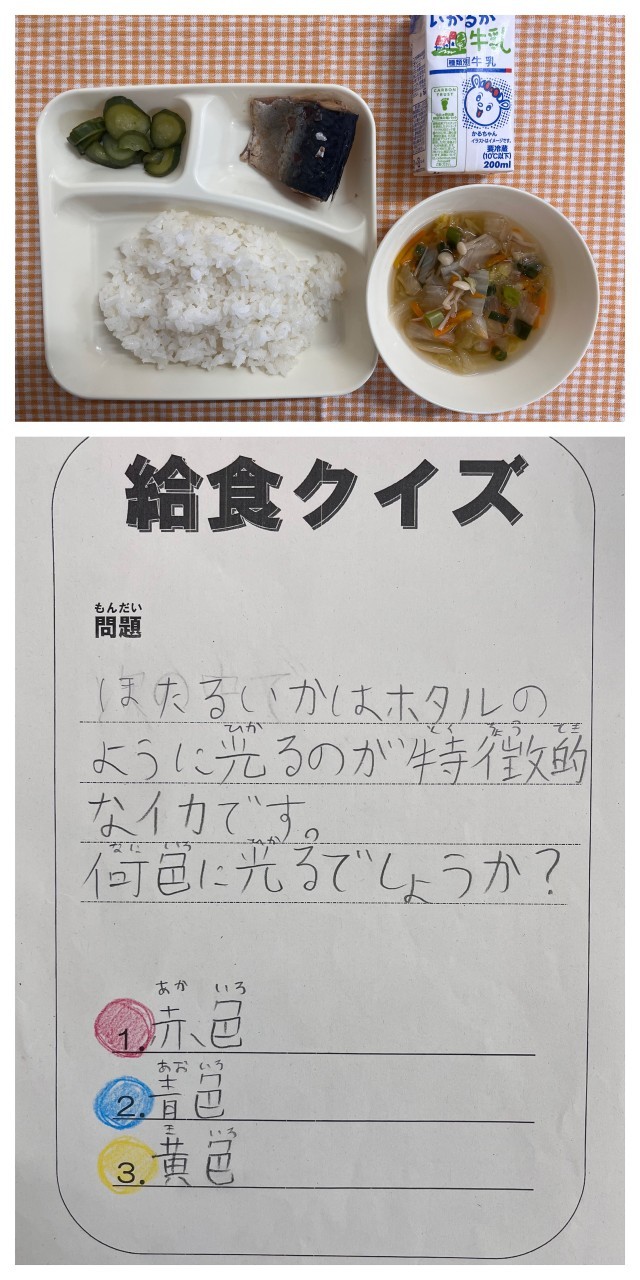 しょうが、赤みそなどの調味料でじっくり煮込んでいます。しょうががさばの臭みを消して食べやすく、みその味がしみこんだ和風の献立でした。