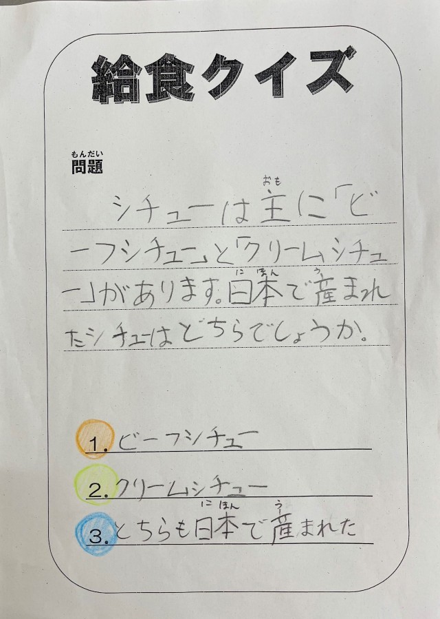クイズは給食委員会の子どもが考えました。