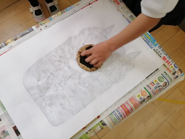 ころころとローラーでインクをつけて、楽しんで取り組んでいました。