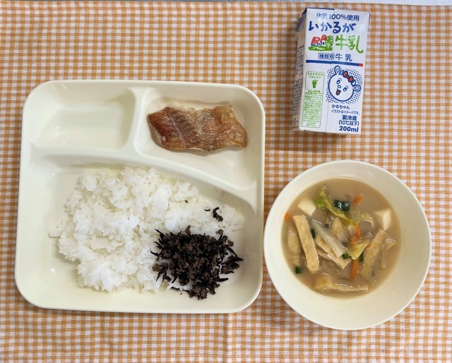 しょうがで牛ひき肉とひじきを香りよくいため、砂糖、みりん、薄口しょうゆで甘辛く味付けしています。子どもたちに人気のある、ごはんが進む一品です。