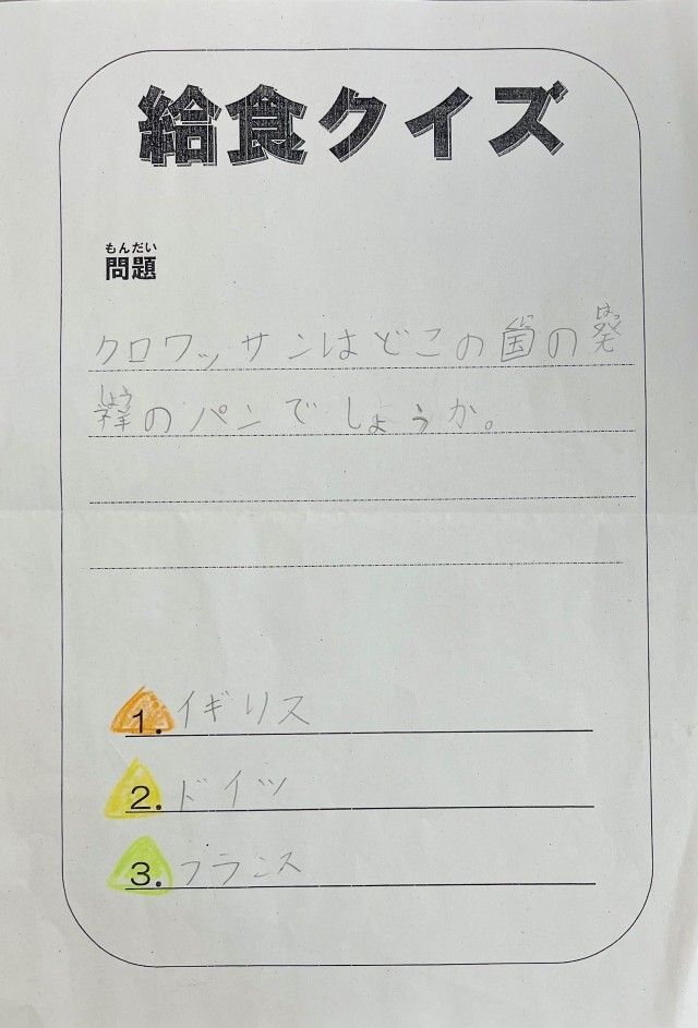 クイズは給食委員会の子どもが考えました。