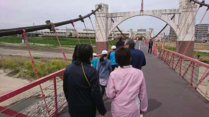 春の遠足に向けて、道路横断の危険性について学びました。みんな、きちんとルールを守って、決められたコースを歩くことができました。