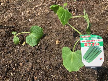 写真は、小学校の朝集会で植えたキュウリとトマトです。🌸
