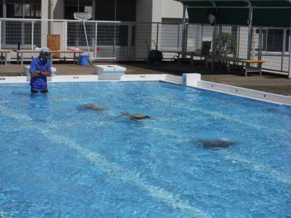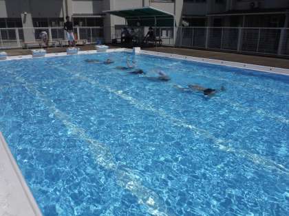 こなした後は、プールから楽しそうな元気な声が響き渡っていました。