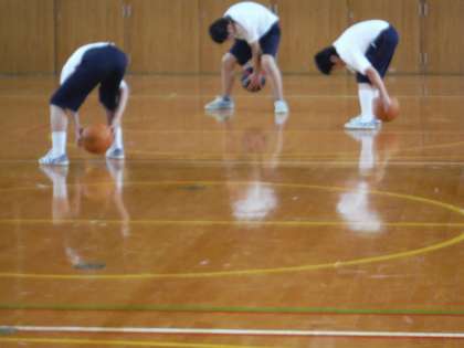 梅雨の晴れ間の体育館で、バスケットボール部の活動がありました