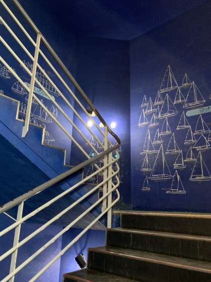 ブルーを基調とした壁の色や、描かれたヨットの絵など、まさに「海洋センター」という感じです。