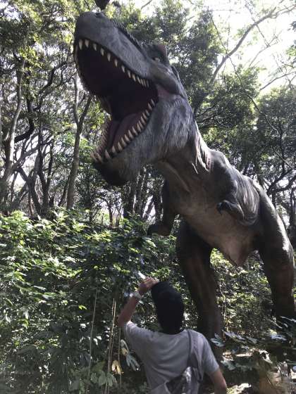恐竜がっ! あるアトラクションでミッションクリアに向けて挑んでいます。