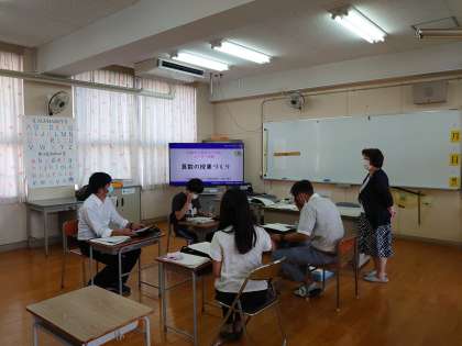 放課後は小学校の先生方が集まり、教育指導員の先生のご指導のもと、算数の授業づくりなどをテーマに研修を行いました。