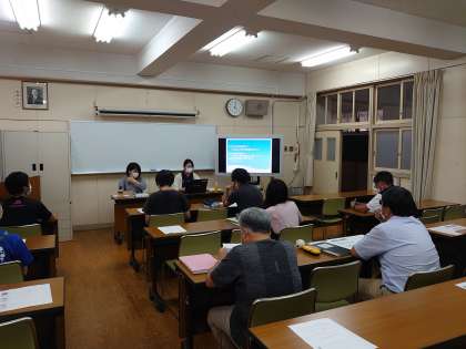 長谷川羽曳野学園の職員の方をお迎えし、学園について児童福祉法でどのように位置づけられているか、学園での子どもたちの様子、などについて、パワーポイントなどを活用して説明いただきました。