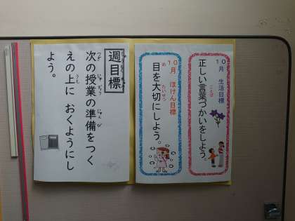 また、週の目標は「次の授業の準備をつくえの上におくようにしよう」です。