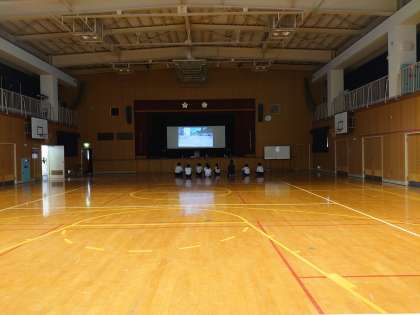 中学生は5時間目、体育館に集まり、運動会の演技の練習を行っています。