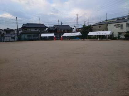 昨日の雨の影響で運動場は湿り気が強いです。少し整備が必要ですが、小中合同運動会は実施できそうです。
