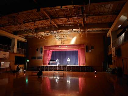 中学校は5・6時間目、舞台発表で披露する劇の練習を行っています。