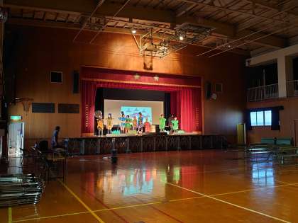 小学校は2時間目、スクールフェスティバルで披露する劇の練習を行いました。