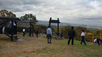 みかん狩りは一段落し、同じ施設内にあるアスレチックを楽しんでいます。