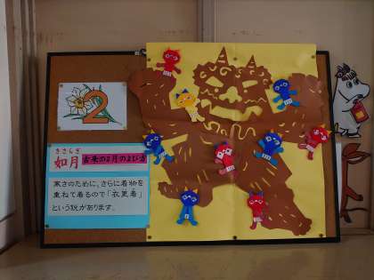 中学校の方には「如月」という言葉の由来も掲示いただいています。