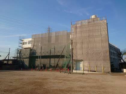昨年秋から本校西側校舎の外壁塗装等工事が進んでいましたが、まもなく完了を迎えます。
