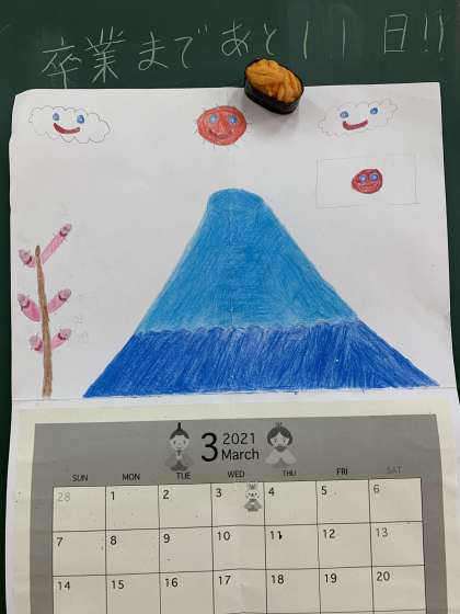 3月のカレンダーを教室に掲示しています。いよいよ最終回となりました。今月の担当は図書委員さんです。