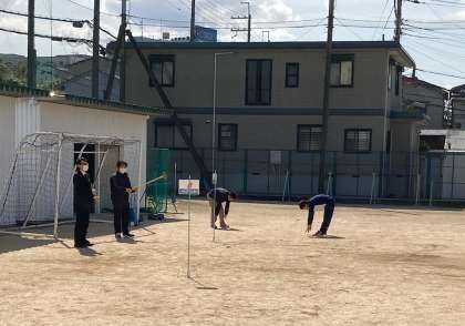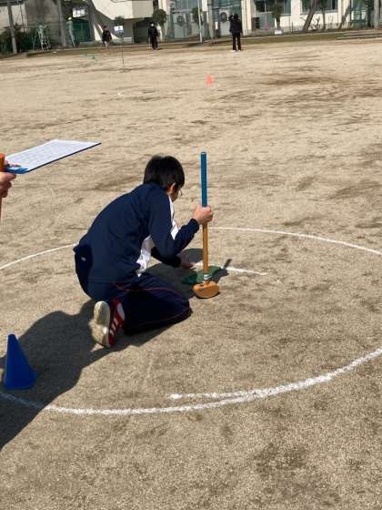朝の寒さは?と思ってしまう暖かい青空のもとで、3年生最後の体育の授業がありました。