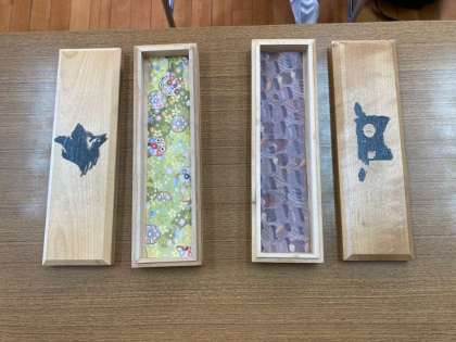 3年生最後の技術作品です。中敷きの紙も自分達で選び、ニス塗まで仕上げられていました。