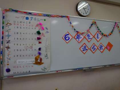 今日の午後、小学校では来週卒業式を迎える6年生のために「送る会」を行いました。