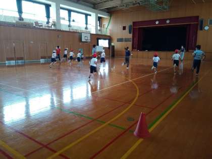 【小学・写真中・右】合同体育では全員でシャトルランに挑戦していました。6年生が最後まで力強く走る姿勢を見て、下の学年の子が良い影響を受け、頑張ります。全学年合同体育の良さが表れています。みんなガンバレ〜!