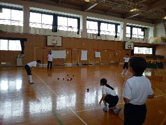 中学校生徒会が、生徒会主催の取り組みとして「ボッチャ」を企画し実施しました。生徒全員に先生もチームに加わり、皆で大いに楽しみました。以前人権教育の一環で実施してから2回目となったので、皆、上達していて接戦でした。