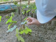 空いている学習園に綿の種を植えておよそ100日。綿がようやく顔を出してくれました。初めての栽培でしたが、無事に綿ができ、小学生、中学生全員で観察をしました。
