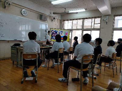 中学生の英語で全員集まって英語によるプレゼンテーションを発表しあいました。自己紹介や自分の夢、また社会問題に対する提案まで、パワーポイントを使ってしっかり発表していました。公開授業ということで、学園の先生方にもみていただき、嬉しそうでした。英語で人前で発表することをこれからもどんどん増やしていってほしいものです。