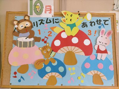 10月の図書館前の紀行掲示板です。毎月、図書館補助員の方がつくってくださり、季節を感じます。中学は菊をモチーフにしたとてもきれいな掲示版です。秋といえば菊が代表的な花ですよね。小学校は23日(土)にあるSFに向けたデザインで作って下さいました。「リズムにあわせて1,2,3」で毎日の子どもたちの練習を応援してくれています♪