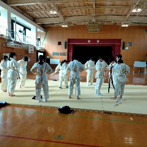 中学生の柔道授業がはじまりました。まずは道着の扱いかたから学び。礼の作法を学んでいました。礼にはじまり礼に終わる心を武道を通じてしっかり身につけてほしいものです。