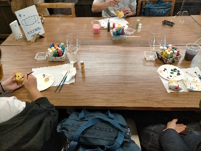 博多人形の絵付けをしました。みんな個性豊かに丁寧に仕上げていました。