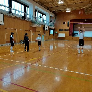 中学生がクラブ活動として、バスケットボールをしていました。熱心にシュート練習をしていましたよ。