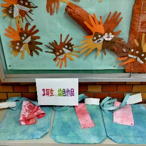 中学3年生が美術授業で、手作りの藍染めトートバッグ作りに挑戦しました。手で染料を揉み込みながら手作りの良さを体験し、皆、思いおもいの作品に仕上げました。