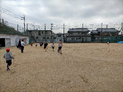 冬の体育はやはり、持久走ですね。子どもたちは、周りの応援に応えようと、息を切らしながタイム更新にがんばっていました!