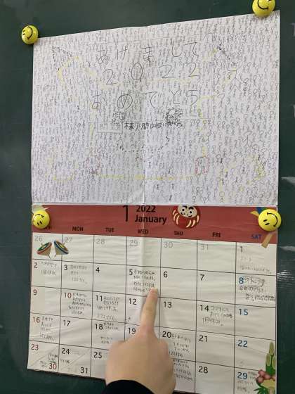 日付の部分はなんと!!すごろくになっていました。掲示をしたら早速すごろくを楽しんでいる生徒がいました。
