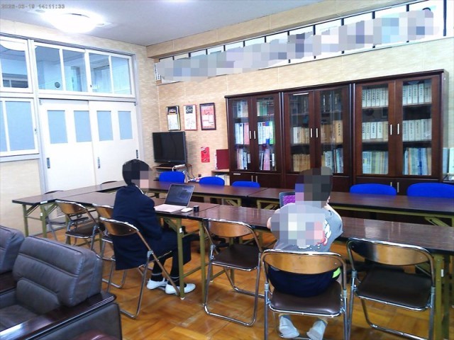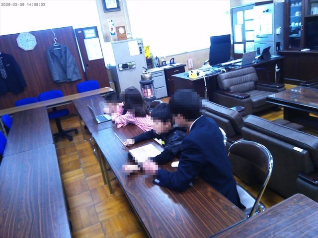 お昼休み 校長室で探究したいことを語らう児童生徒の様子