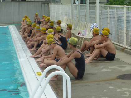 昨日は雨天のためありませんでしたので、今日がプール開放の1日目になります。写真は、その様子です。